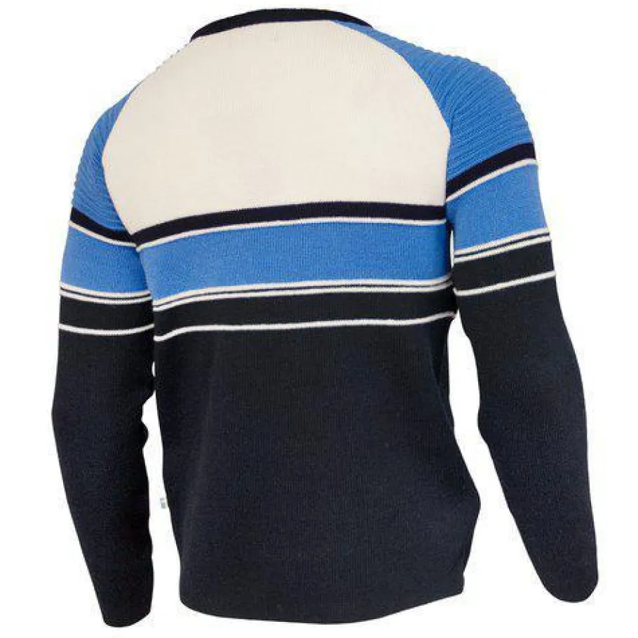 Retro Lake Placid är en rundhalsad tröja med olika färgblock. Raglanärm och strukturstickning vid axlarna. Raka ändar vid kropp och armar. Robust stickning, 8 gauge. Här har i en av vår mest populära Retro tröja från 80-talet. Perfekta skidtröjan.