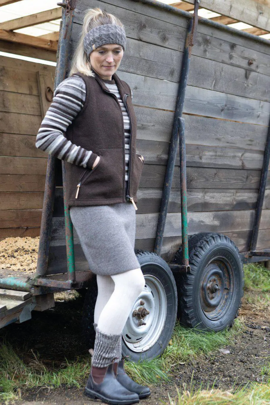 Mysigt och värmande pannband framstickat i 100% naurlig ull, helt fri från färgämnen och kemikalier. Kabelstickning på utsidan och mjukt ribbstickad insida. Litet logomärke fäst upptill runt vänster framkant. One size.