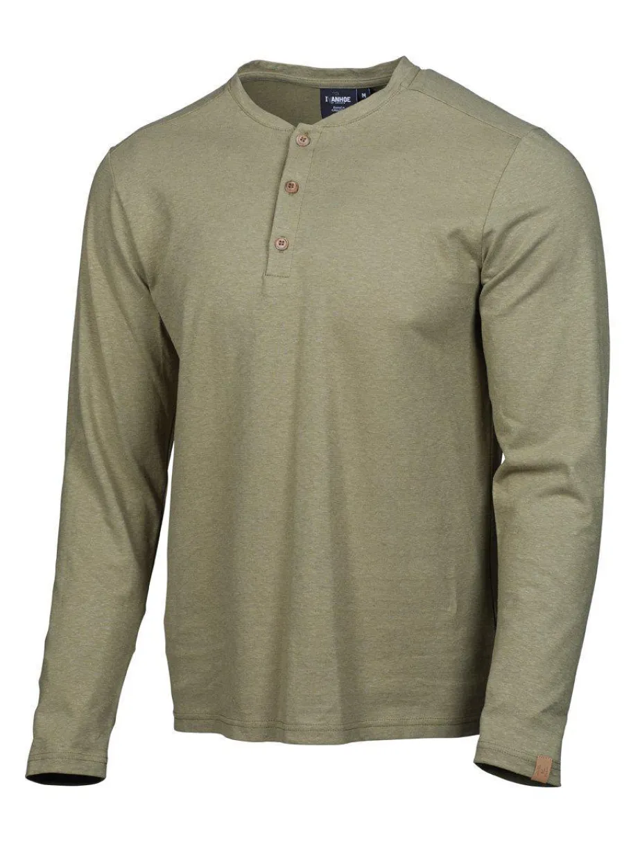 Långärmd T-shirt i en härlig mix av ekologisk bomull och hampa. Materialat har en schyst slubbeffekt som ger extra effekt. Tre träknappar framtill samt litet logomärke i jacron nertill på vänster ärm.