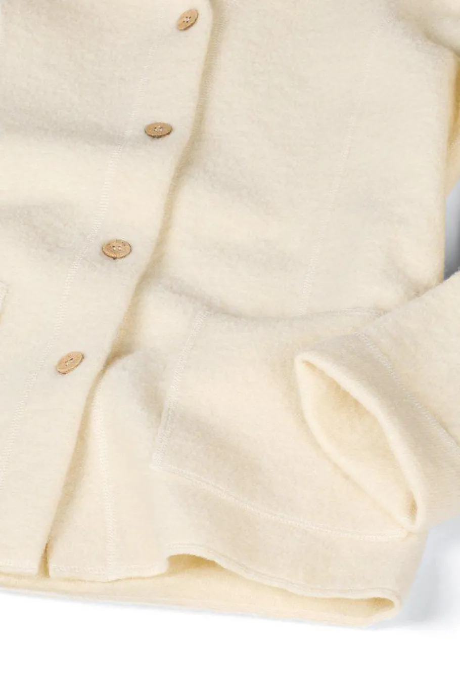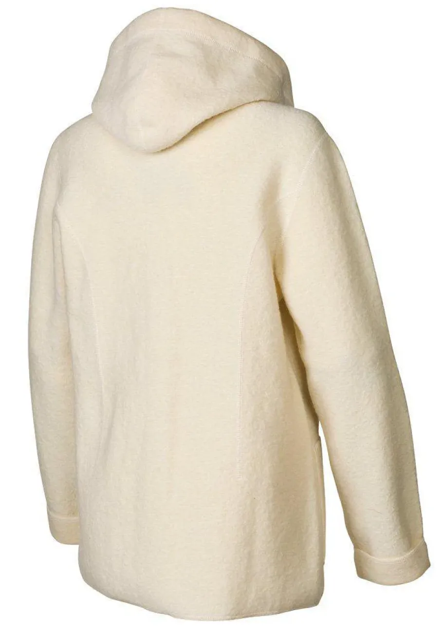 Den perfekta vårjackan kommer här! Smidig att slänga på sig och passar lika bra under skogspromenaden som på shoppingturen på stan. Stickad i 100% ull, där ullen är helt obehandlad och fri från kemikalier och färgämnen. Ulljackan har huva och generösa sidfickor. Knapparna framtill är gjorda av kokosnötskal, där varje knapp blir unik i färg och struktur. Logo badge i jacon upptill på vänster ärm.