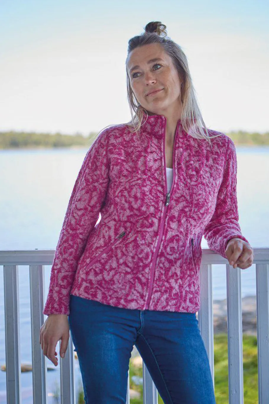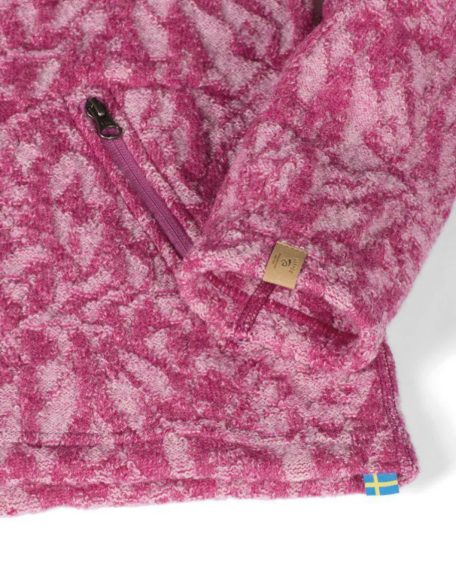 Vackert jaquardmönster i härliga färgkombinationer. Plagget är stickat i 100% ull och är därför lika värmande och funktionell som det är snyggt. Hel dragkedja framtill och sidfickor med dragkedjor gör detta till en smidig jacka i mellansäsonger, men funkar lika bra som ett värmande lager 2 under skaljackan. Logo badge sitter smakfullt placerat nertill på vänster ärm.
