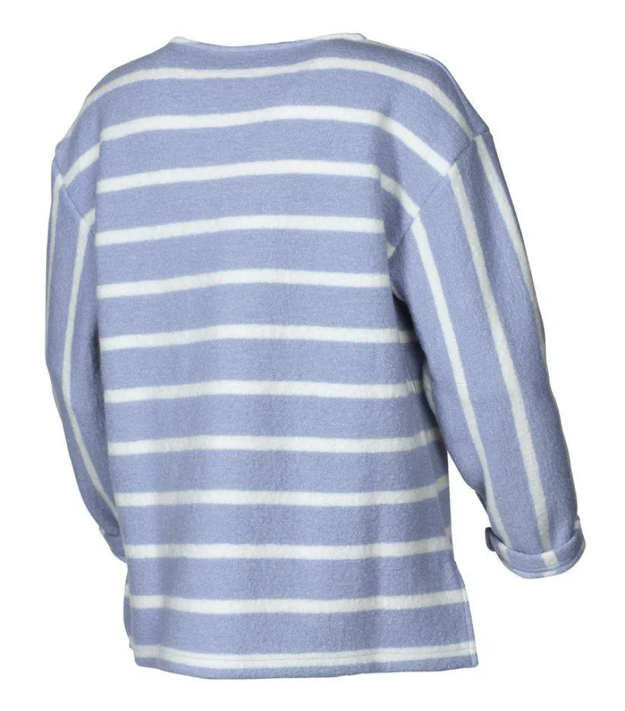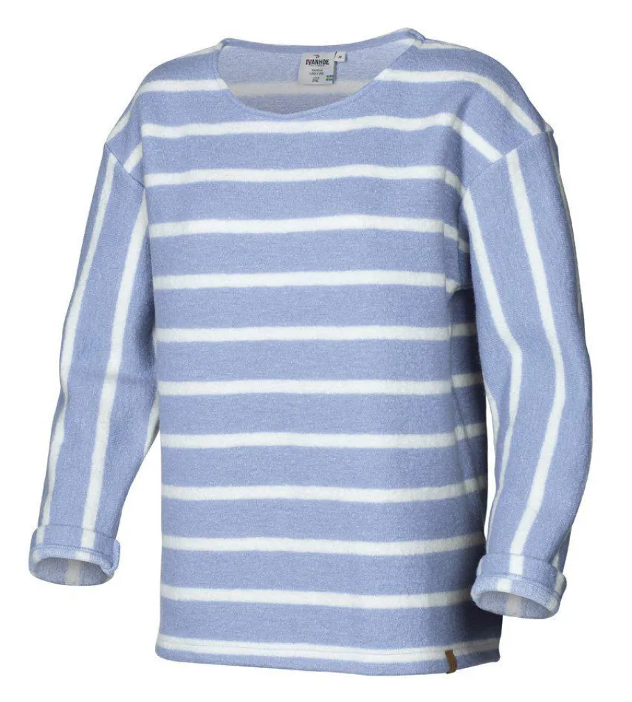 GY Bystad är en härlig ulltröja med klassisk rand vilket alltid är rätt och vilken sommarkänsla det förmedlar. GY Bystad är en avslappnad modell stickad i vår mix av 60% ull, 40% Lyocell (TENCEL™), ett material som blivit mycket uppskattat särskilt under vår/sommar. Materialet är använt på vis att randningen går åt olika håll på kropp och ärmar. Ärmen har dessutom lite vidd, så att man lätt kan kavla upp ärmen, något vi rekommenderar för att toppa looken. Generös halsringning och slitsar nertill i sidorna. Kan lätt bli en favorit i garderoben.
