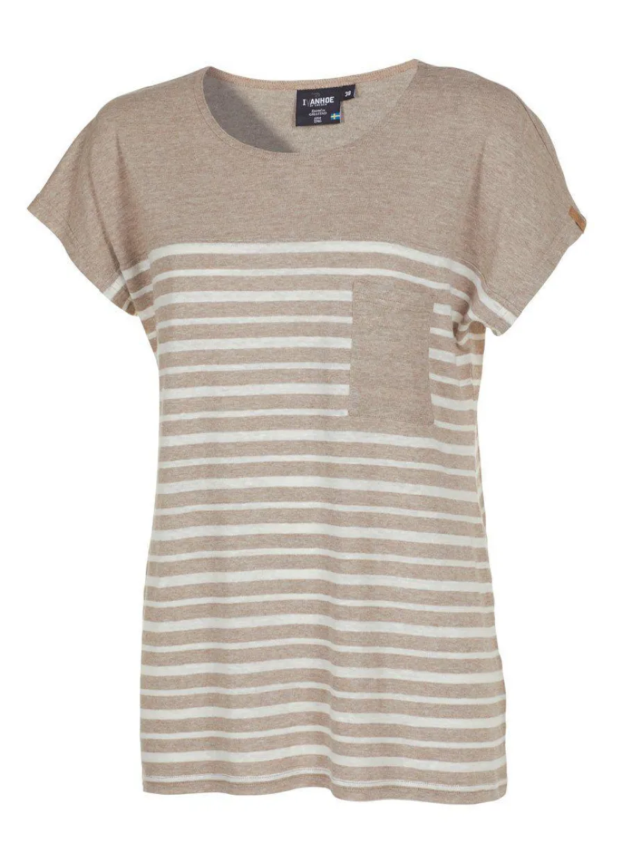 Topp där vi kombinerat randigt och enfärgat till en härlig design som andas sommar! Oket fram och bak samt den dekorativa bröstfickan är i enfärgat medan nertill body är randig.Jacron-märke är fäst på vänster ärm.