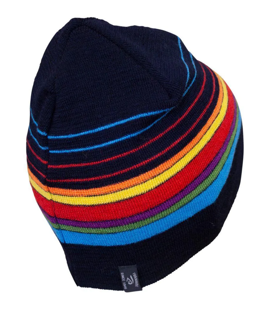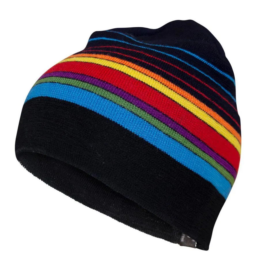 Retro Hang Loose Hat har en tunn och stretchig stickning. Ullen är mulesingfri och garnet är Bluesign-certifierat. Samma glada färgkombination som på tröjan Hang Loose, så möjligt att matcha för att få rätt WOW-effekt.
