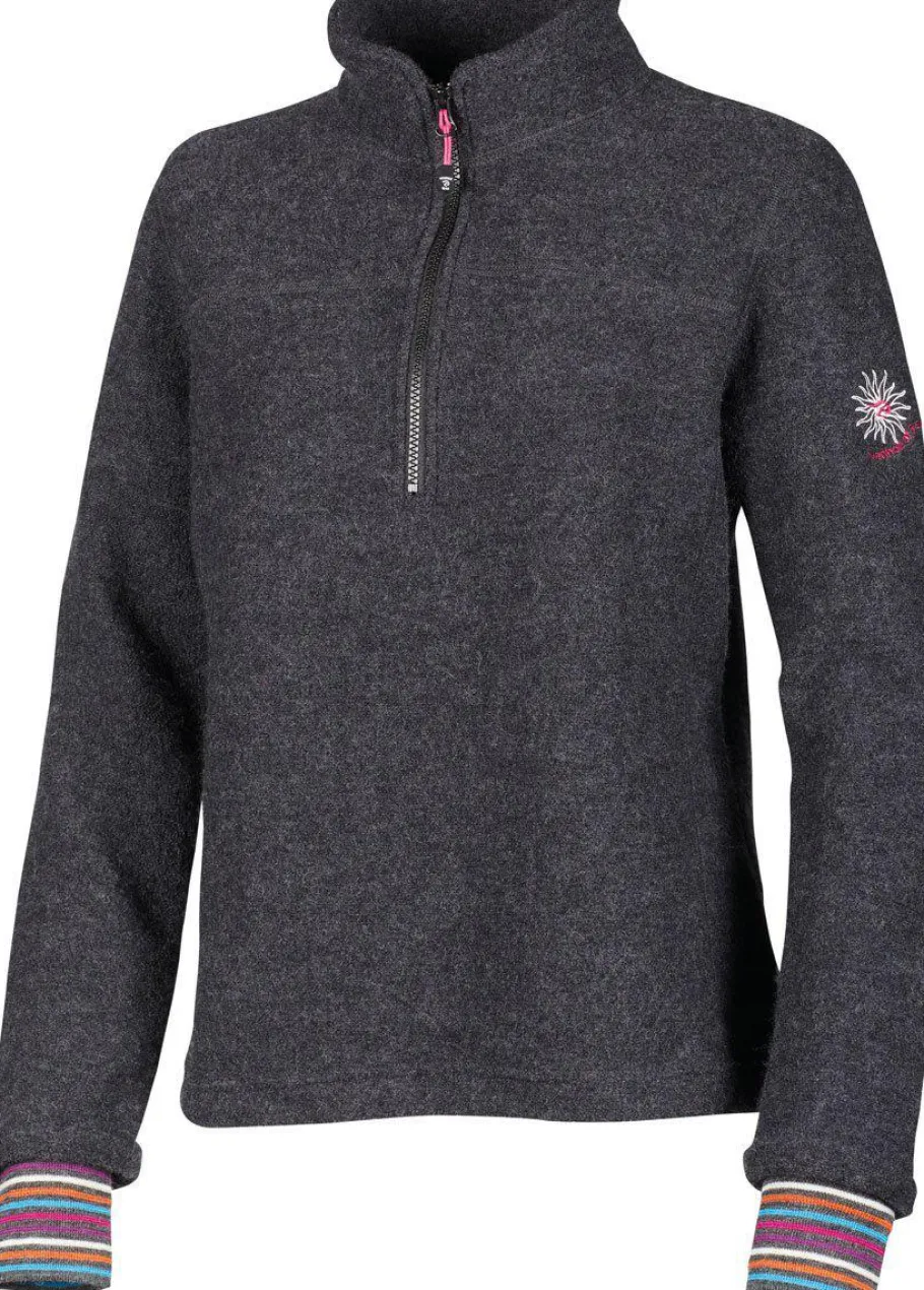 Dina half zip är en fantastisk tröja i 100% filtad ull med härliga inslag av glada accentfärger, där en randig, multifärgad mudd verkligen höjer plagget. Perfekt lager två under en tunn skaljacka. Passar ypperligt för den som gillar att vara aktiv. Tröjan är stickad hos oss i Gällstad, Sverige.