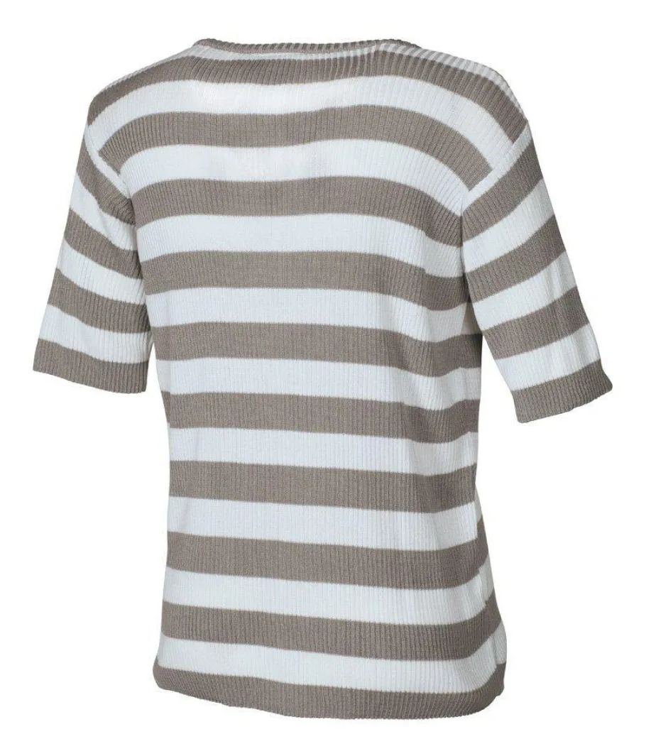 Ribbstickad topp i somrig, klassisk rand tillverkad i sval och mjuk TENCEL®. Känsan är helt oslagbar och TENCEL®-materialet är inte bara mjukt och skönt att bära, utan har en rad bra egenskaper såsom att det fungerar antibakteriellt, andas bra, transporterar fukt mycket bra, torkar snabbt och blir sällan skrynkligt. Denna top är enkel och snygg att bära, den har en liten smakfull logo badge i jacron på vänster ärm.