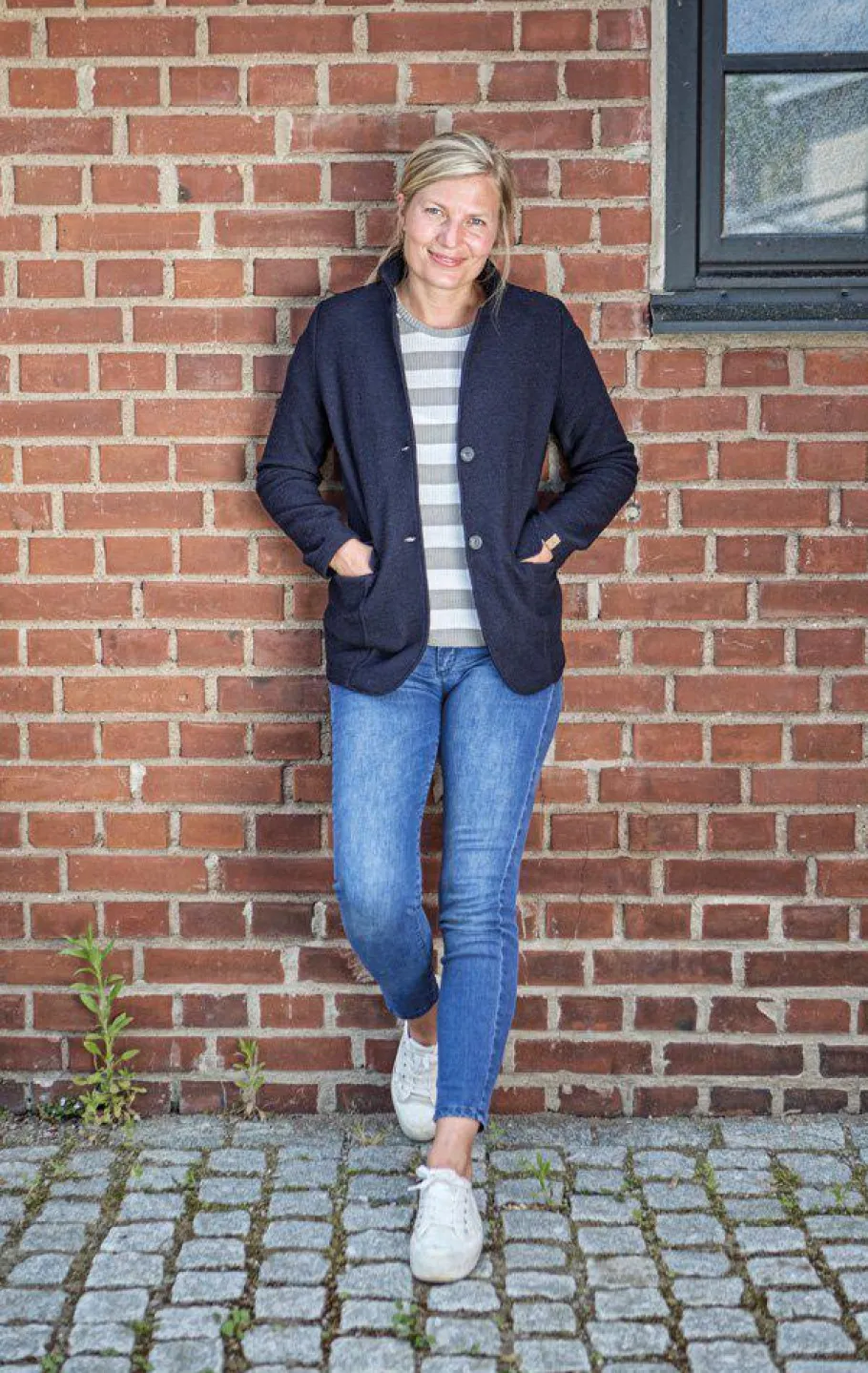 Tvätta fintvätt 30° enligt skötselrådet som du hittar i sidsömmen. Tänk på att plagget bör sträckas och formas till i vått tillstånd för att få tillbaka sin ursprungliga form. Plagget ska plantorkas.