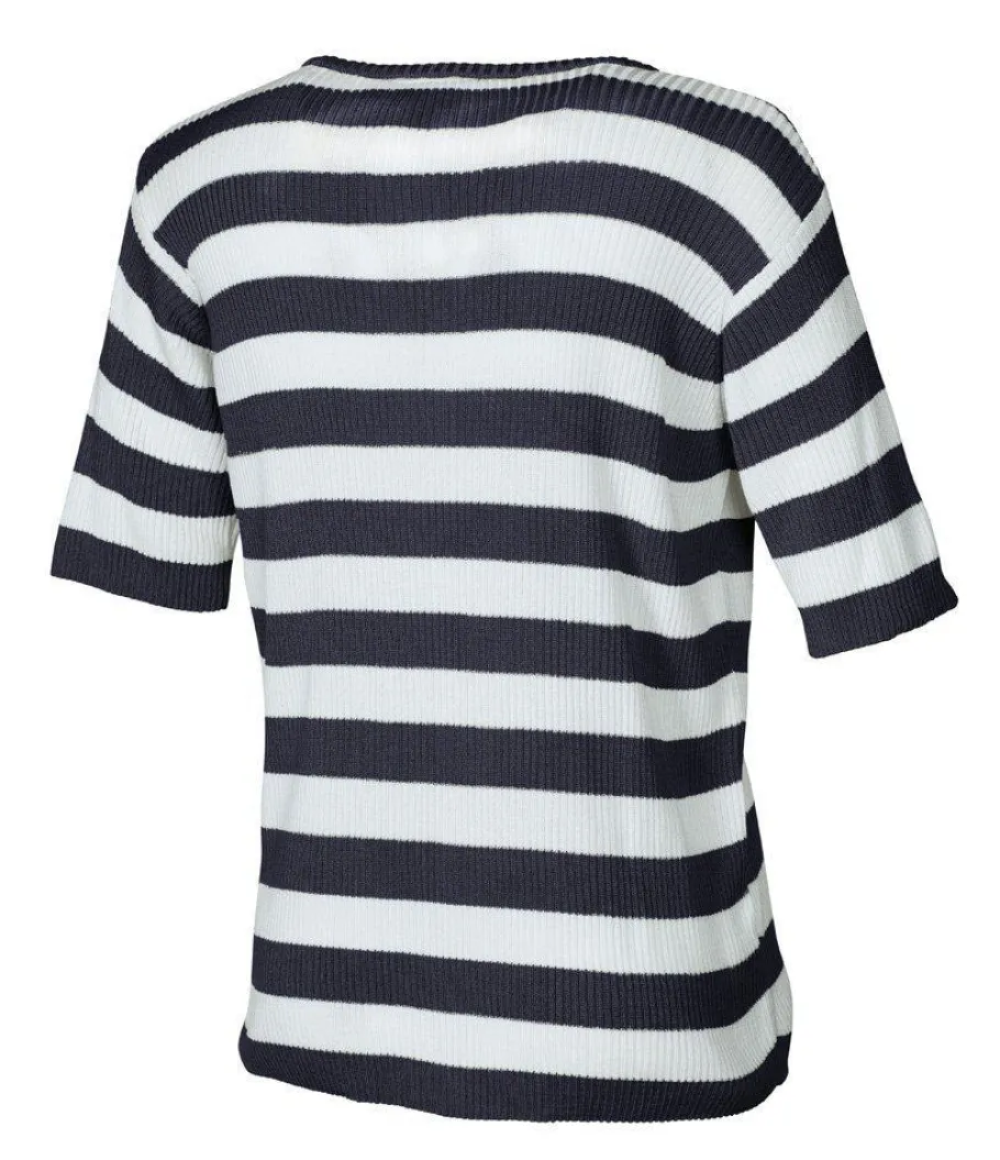 Ribbstickad topp i somrig, klassisk rand tillverkad i sval och mjuk TENCEL®. Känsan är helt oslagbar och TENCEL®-materialet är inte bara mjukt och skönt att bära, utan har en rad bra egenskaper såsom att det fungerar antibakteriellt, andas bra, transporterar fukt mycket bra, torkar snabbt och blir sällan skrynkligt. Denna top är enkel och snygg att bära, den har en liten smakfull logo badge i jacron på vänster ärm.