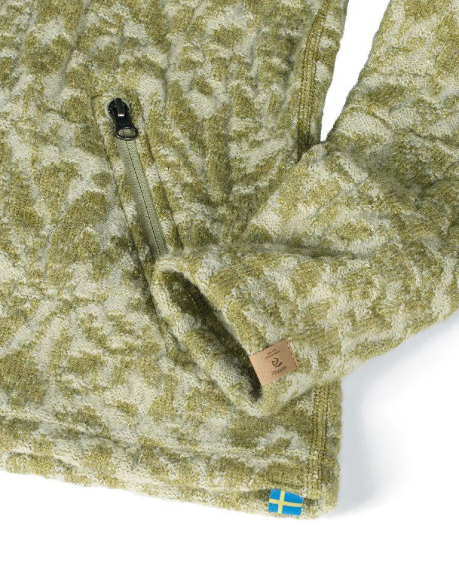 Vackert jaquardmönster i härliga färgkombinationer. Plagget är stickat i 100% ull och är därför lika värmande och funktionell som det är snyggt. Hel dragkedja framtill och sidfickor med dragkedjor gör detta till en smidig jacka i mellansäsonger, men funkar lika bra som ett värmande lager 2 under skaljackan. Logo badge sitter smakfullt placerat nertill på vänster ärm.