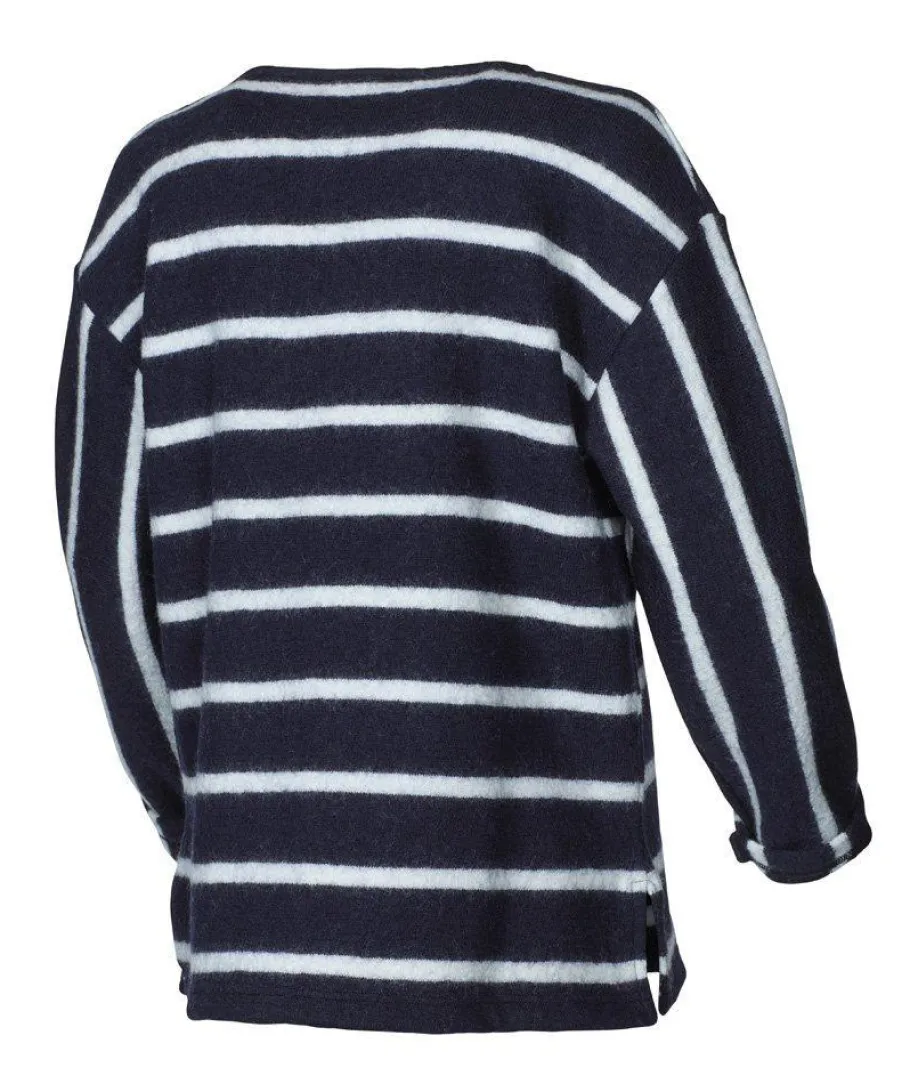 GY Bystad är en härlig ulltröja med klassisk rand vilket alltid är rätt och vilken sommarkänsla det förmedlar. GY Bystad är en avslappnad modell stickad i vår mix av 60% ull, 40% Lyocell (TENCEL™), ett material som blivit mycket uppskattat särskilt under vår/sommar. Materialet är använt på vis att randningen går åt olika håll på kropp och ärmar. Ärmen har dessutom lite vidd, så att man lätt kan kavla upp ärmen, något vi rekommenderar för att toppa looken. Generös halsringning och slitsar nertill i sidorna. Kan lätt bli en favorit i garderoben.