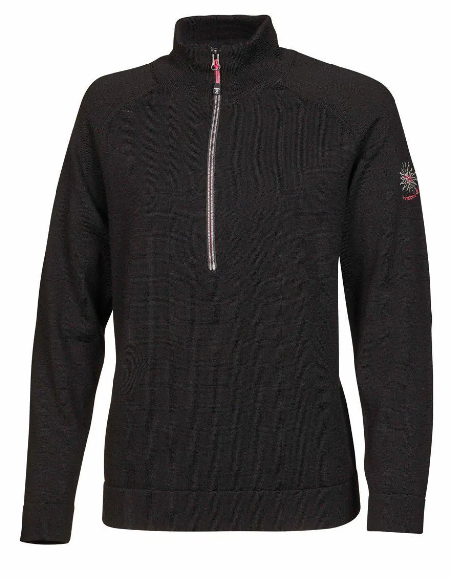 Supermjuk, supersmidig och superskön! Denna tröja med halv dragkedja framtill är stickade i en tunn och mycket följsam stickning. Plagget tar ingen plats, så optimal att packa med på alla äventyr, om det så är i vandringsryggsäcken eller i golfbagen. Skönt värmande förstärkningsplagg. Dragkedja med extra design och färgaccent, samt matchande brodyr upptill vänster ärm.