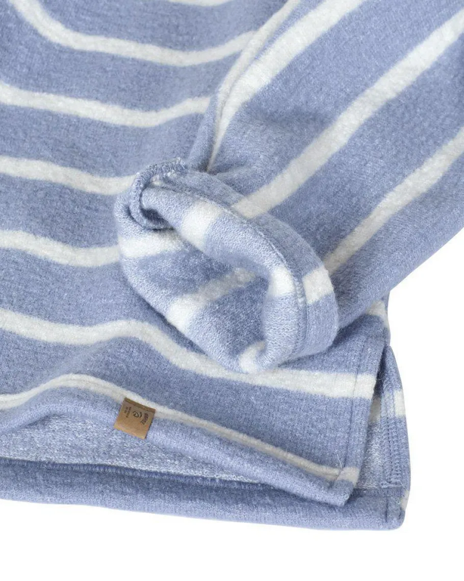 GY Bystad är en härlig ulltröja med klassisk rand vilket alltid är rätt och vilken sommarkänsla det förmedlar. GY Bystad är en avslappnad modell stickad i vår mix av 60% ull, 40% Lyocell (TENCEL™), ett material som blivit mycket uppskattat särskilt under vår/sommar. Materialet är använt på vis att randningen går åt olika håll på kropp och ärmar. Ärmen har dessutom lite vidd, så att man lätt kan kavla upp ärmen, något vi rekommenderar för att toppa looken. Generös halsringning och slitsar nertill i sidorna. Kan lätt bli en favorit i garderoben.