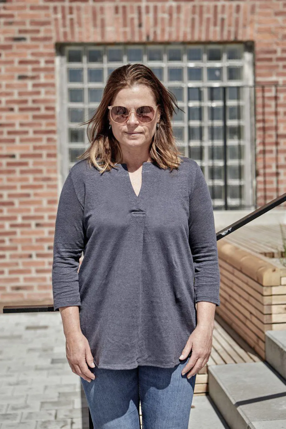 Gy Ilse Top med 3/4 ärm och generös passform. Snygg design i halsöppning och perfekt djup i urringningen. Linet känns svalt och skönt mot kroppen och ger plagget ett fint fall. Nertill vänster sida sitter logomärket i jacron. Jacron är ett material som ser ut som läder, men som faktiskt är ett unikt pappersmaterial. GY Ilse finns i 5st färger. Ny färg denna säsong är 012/Dark olive