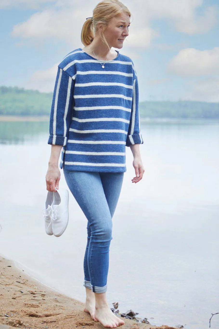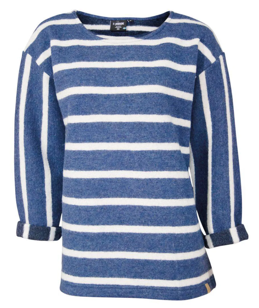 GY Bystad är en härlig ulltröja med klassisk rand vilket alltid är rätt och vilken sommarkänsla det förmedlar. GY Bystad är en avslappnad modell stickad i vår mix av 60% ull, 40% Lyocell (TENCEL™), ett material som blivit mycket uppskattat särskilt under vår/sommar. Materialet är använt på vis att randningen går åt olika håll på kropp och ärmar. Ärmen har dessutom lite vidd, så att man lätt kan kavla upp ärmen, något vi rekommenderar för att toppa looken. Generös halsringning och slitsar nertill i sidorna. Kan lätt bli en favorit i garderoben.