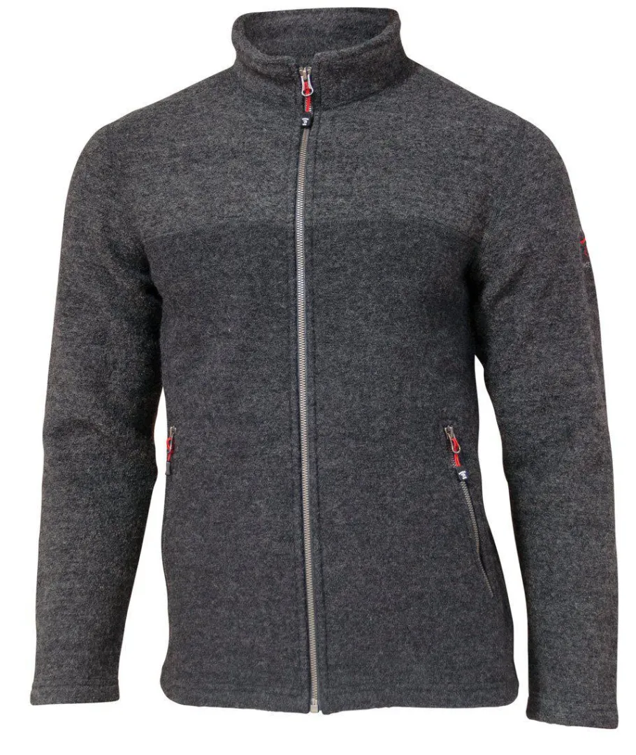 En filtad ulltröja med hel dragkedja framtill samt dragkedjor i sidfickorna. Effektfull melangé-stickning i ok, krage och ärmar i snygg kontrast till enfärgat front och bakparti. Tröjan blir den perfekta ulljackan i mellansäsongerna. Plagget är stickat i den egna fabriken i Gällstad. Denna modellen finns även med luva och heter Joel hood. Perfekta tröjan för de som gillar att vara aktiva.
