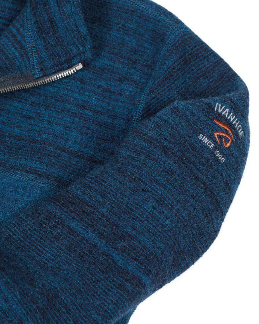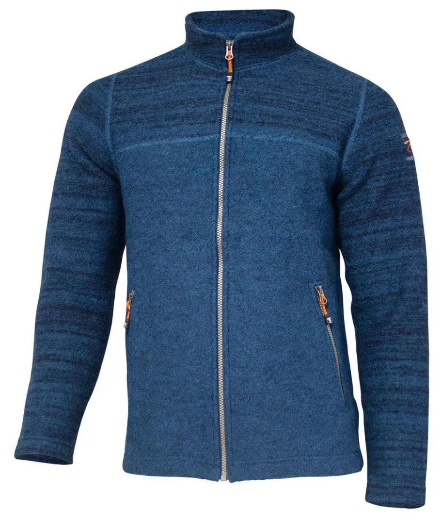 En filtad ulltröja med hel dragkedja framtill samt dragkedjor i sidfickorna. Effektfull melangé-stickning i ok, krage och ärmar i snygg kontrast till enfärgat front och bakparti. Tröjan blir den perfekta ulljackan i mellansäsongerna. Plagget är stickat i den egna fabriken i Gällstad. Denna modellen finns även med luva och heter Joel hood. Perfekta tröjan för de som gillar att vara aktiva.